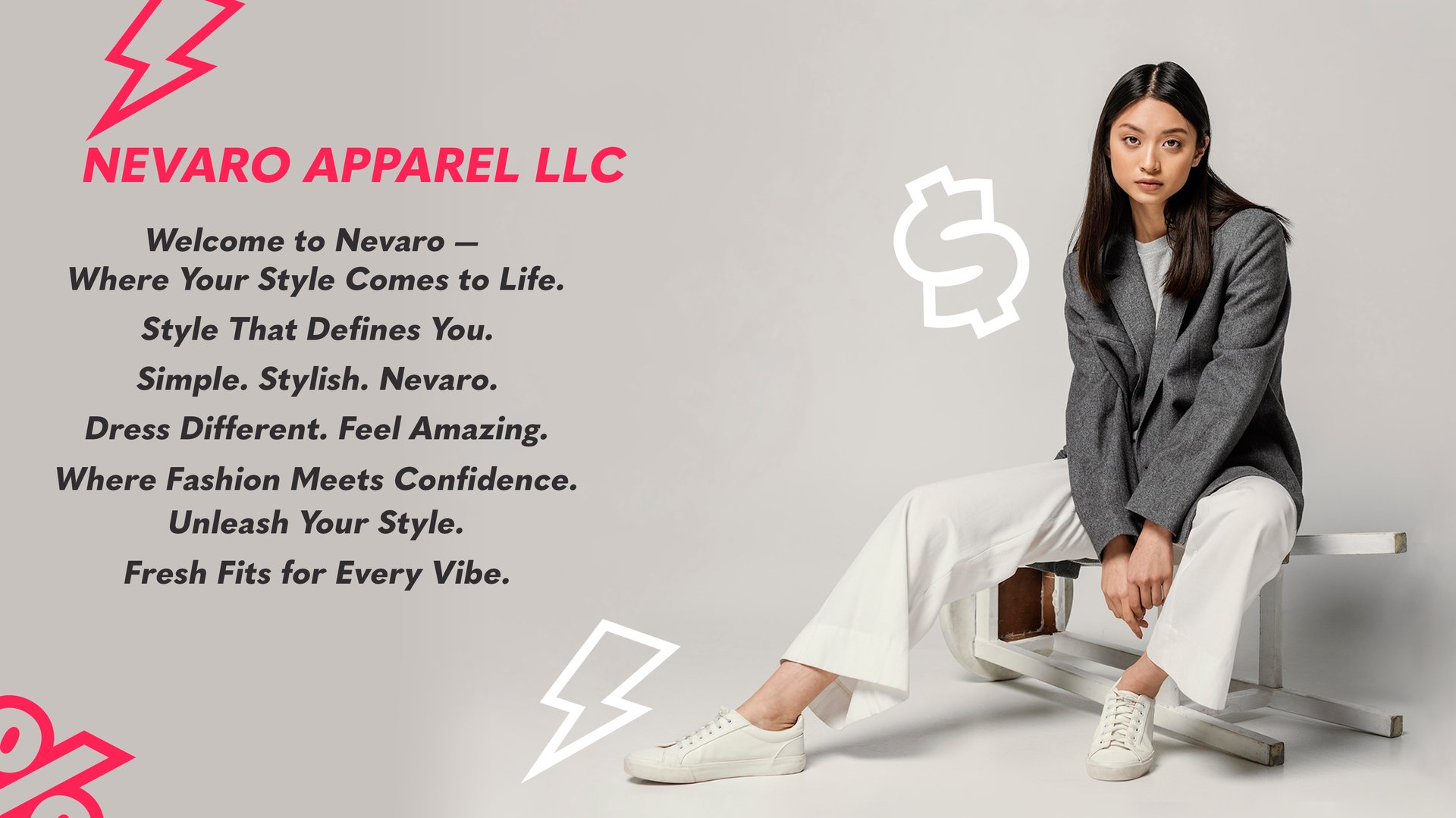 Nevaro Apparel LLC is a boutique-inspired clothing brand offering refined, stylish outfits crafted for the modern individual. We believe fashion is a form of self-expression, and our curated collections are designed to highlight confidence, beauty, and elegance in every detail. Discover timeless styles made to elevate your wardrobe.